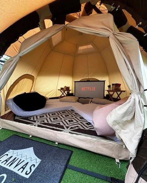 A bell tent cinema hire is particularly suitable for smaller anniversary celebrations. The enclosed space helps create a clear viewing area while still allowing guests to enjoy the outdoor setting.